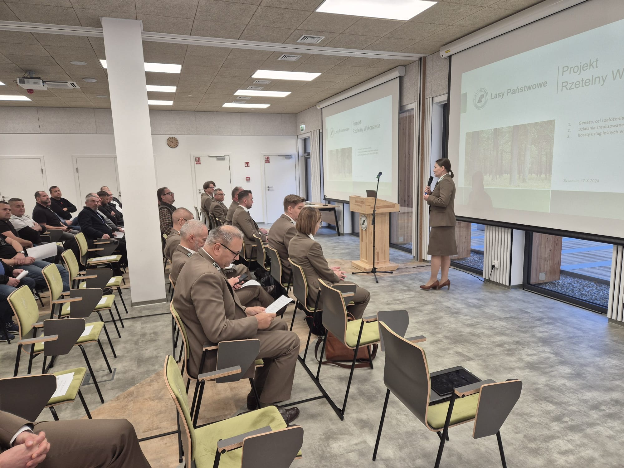 W dniu 17 października 2024 roku w siedzibie RDLP w Szczecinie odbyło się spotkanie Dyrektora Regionalnego Pawła Gzyla z przedsiębiorcami leśnymi. W wydarzeniu uczestniczyło około 50 firm, reprezentowanych m.in. przez prezesa Stowarzyszenia Przedsiębiorców Leśnych Tadeusza Ignaciuka oraz wiceprezesa Wojciecha Szczotę.