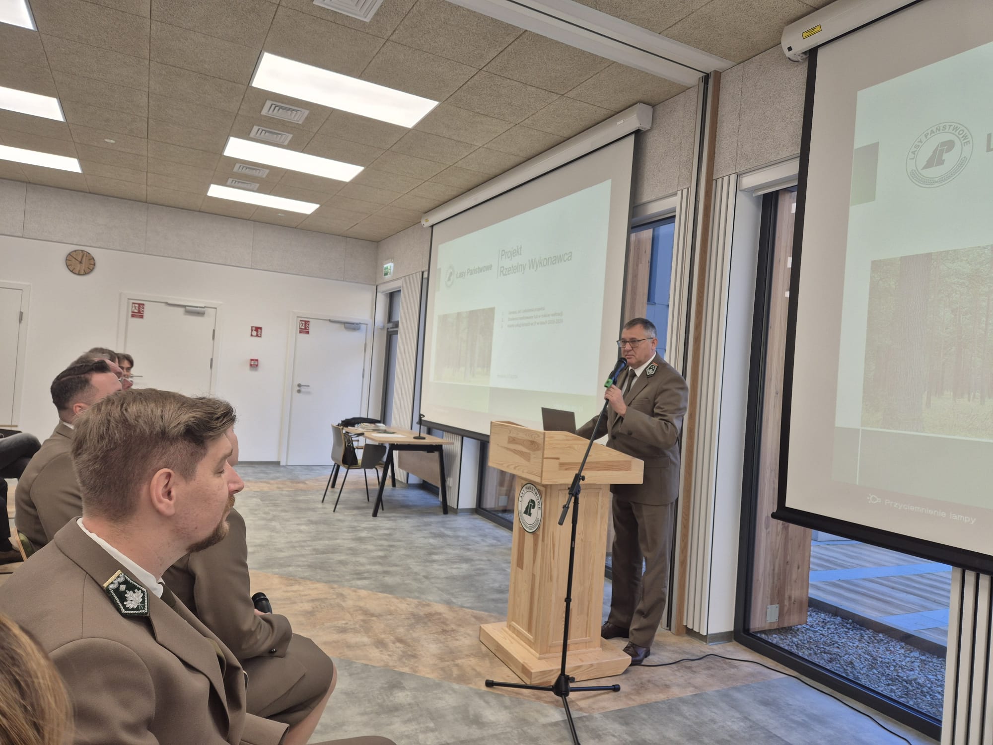 Nadleśniczy Wolsztyna, Krzysztof Kotlarski, przedstawił zmiany w standaryzacji usług leśnych na 2025 rok, zachęcając przedsiębiorców do aktywnego udziału w dyskusji na ten temat.